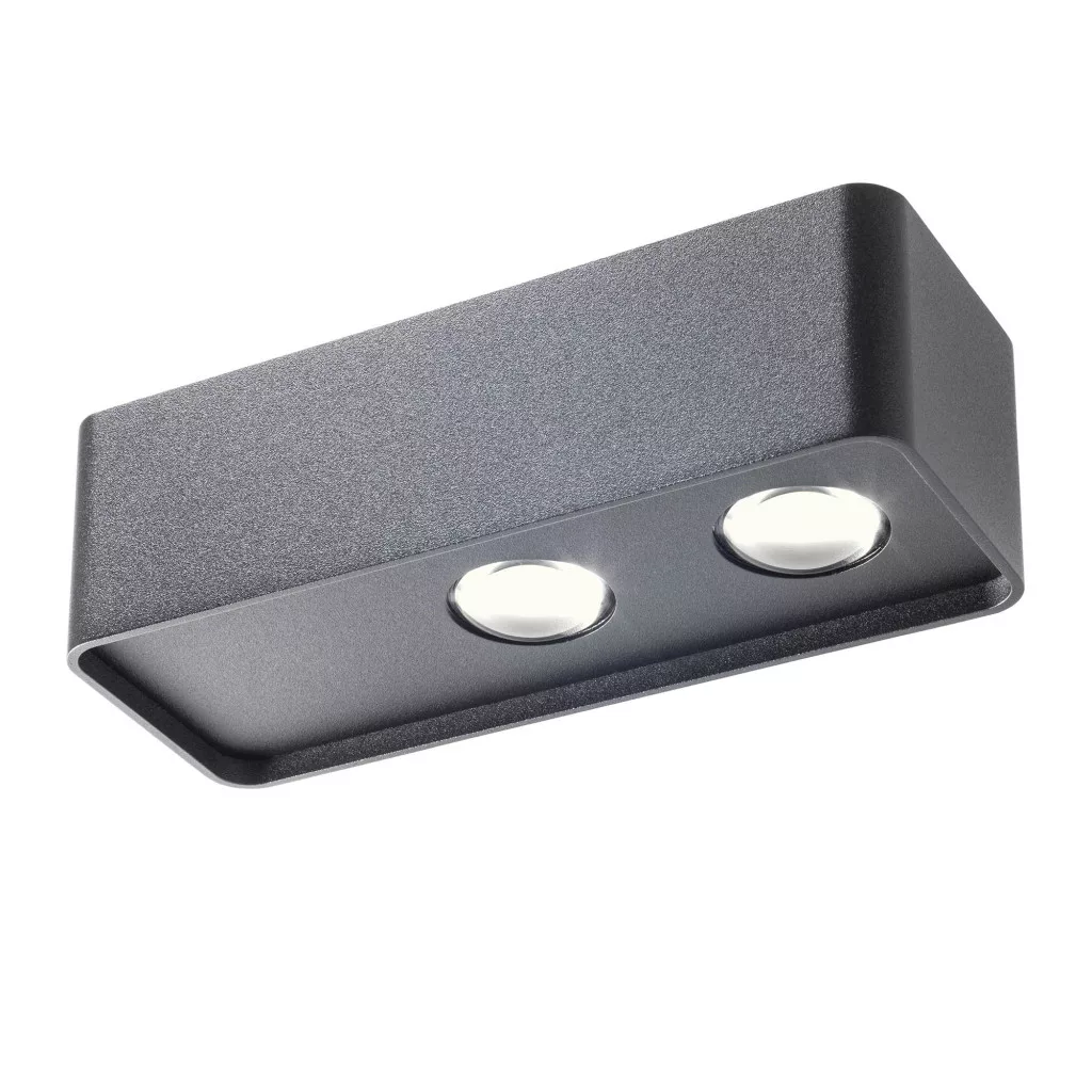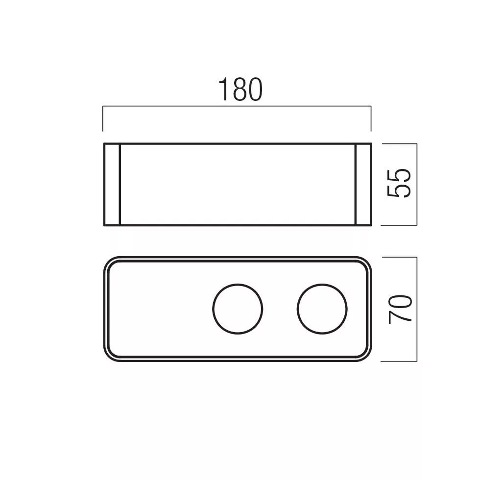 Matt fekete színű fém fali lámpa 2db átlátszó polikarbonát lencsével, meleg fehér (2700K) színhőmérsékletű beépített LED fényforrással. A lámpa csak lefelé világít. Triac változat, egy külön vásárolható speciális kapcsoló segítségével fényerőszabályozható. A kapcsolóról érdeklődjön ügyfélszolgálatunkon.