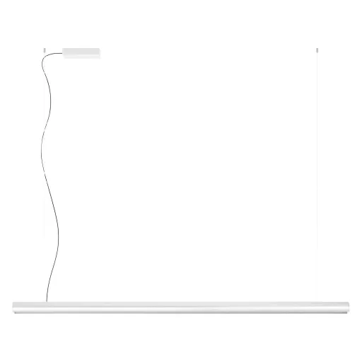 180cm hosszú, matt fehér színű alumínium függesztett lámpa szaténos műanyag betéttel, beépített LED fényforrással. A termék színhőmérséklete meleg vagy extra meleg fehér fényre változtatható illete a fényereje szabályozható érintés nélküli, intuitív gesztusos vezérléssel.