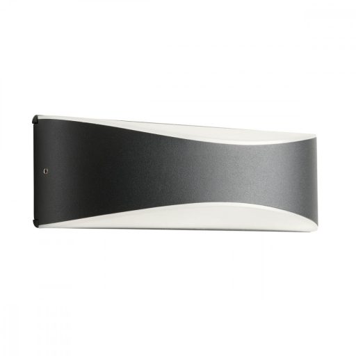 Sötét szürke színre festett alumínium vázas kültéri fali lámpa opálos polikarbonát betétes búrával, IP65-ös védelemmel. A lámpa felfelé és lefelé egyaránt világít.