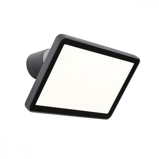 Sötét szürke színű alumínium kültéri falra és mennyezetre egyaránt szerelhető lámpa 50W meleg fehér fényű beépített LED fényforrással, edzett üveg betéttel, IP65-ös védelemmel. A lámpa feje dönthető, így a fény irányítható.