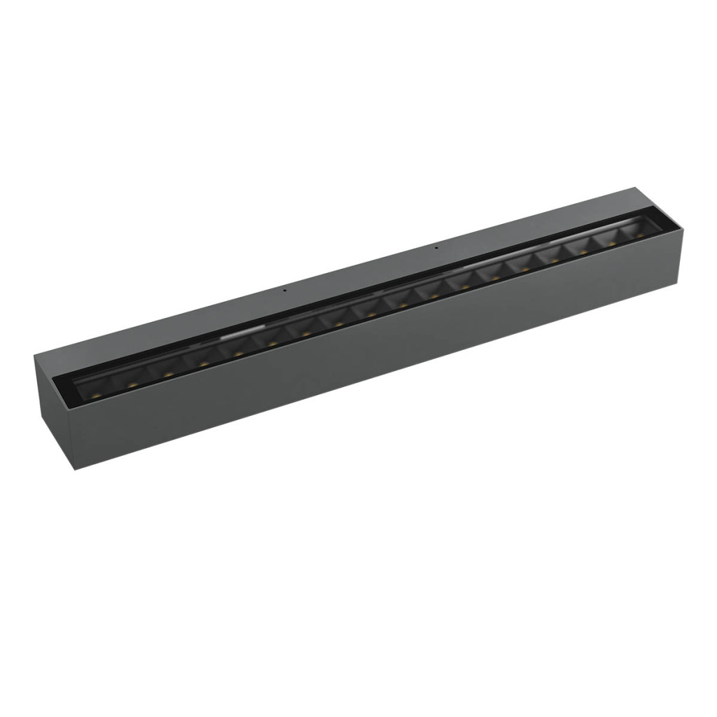 Sötét szürke színre festett alumínium kültéri fali lámpa alul polikarbonát és üveg betéttel, meleg fehér(2700K) színhőmérsékletű beépített LED fényforrással, IP65-ös védelemmel. A lámpa felfelé és lefelé egyaránt világít.