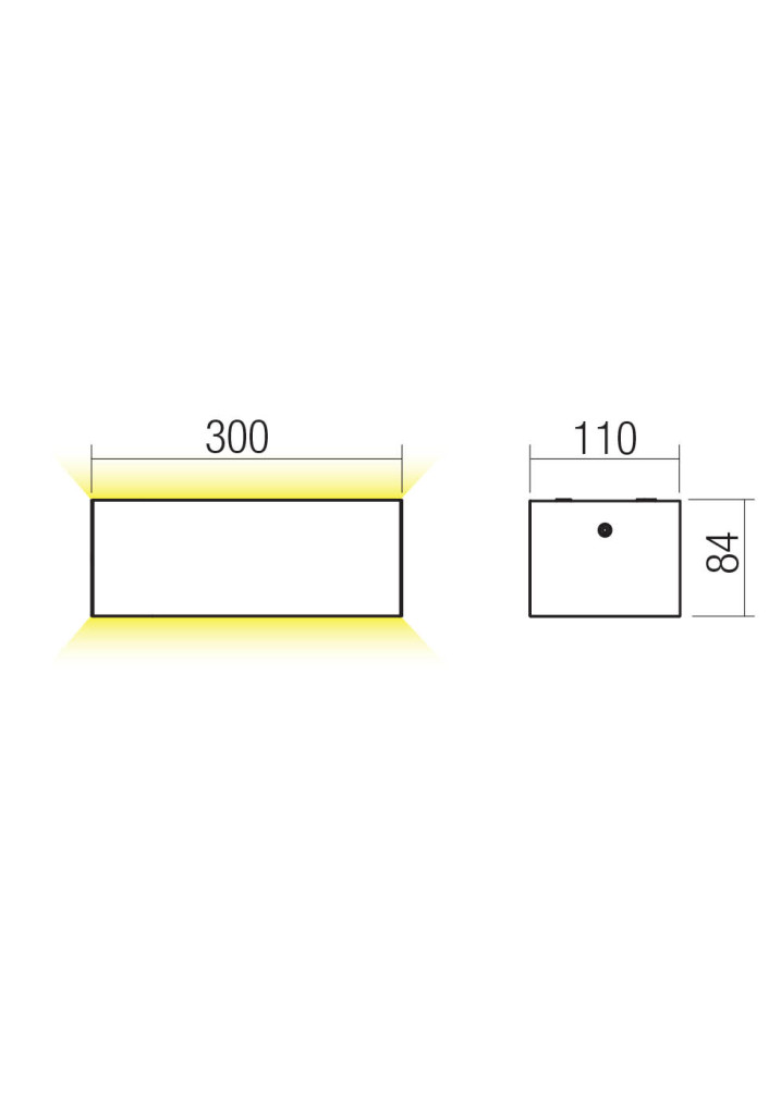 Matt fehér színű alumínium kültéri fali lámpa meleg fehér színhőmérsékletű beépített LED fényforrással, IP65-ös és IK06-os védelemmel, szatinált üveg betéttel. A LED színhőmérséklete a lámpatesten állítható 2700 vagy 3000Kelvinre. A lámpa felfelé és lefelé egyaránt világít.