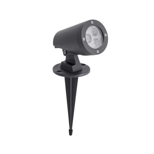 Sötét szürke színre festett alumínium mozgatható mini fényvető. A lámpa padlóhoz falra és mennyezetre egyaránt rögzíthető, illetve leszúró tüskét is tartalmaz. A lámpa beépített LED fényforrással és IP65-ös védelemmel rendelkezik.