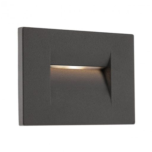 Szürke színű alumínium kültéri falba épethető lámpa LED fényforrással és beépített müködtetővel, IP54-es védelemmel.