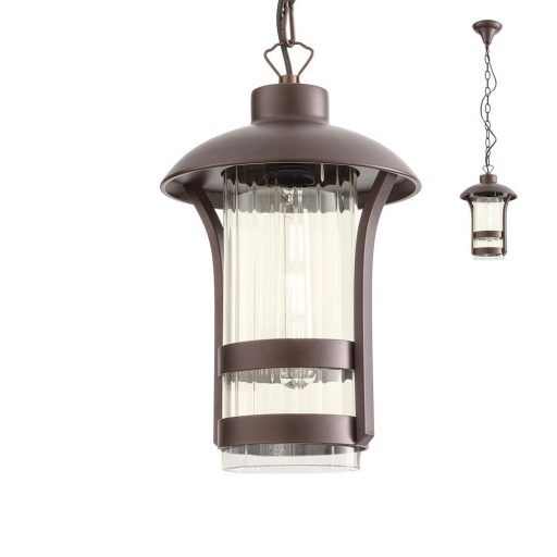 Sötét barna színűre festett fém kültéri lámpa bordázott üveg búrával és IP23-as védelemmel.