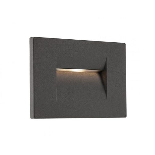 Kültéri falba építhető lámpa, sötét szürkére festett alumínium testtel, beépített LED fényforrással.