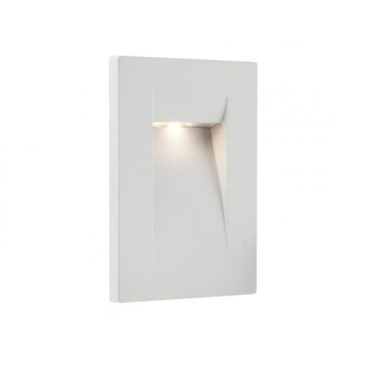 Kültéri falba építhető lámpa, matt fehérre festett alumínium testtel, beépített LED fényforrással.