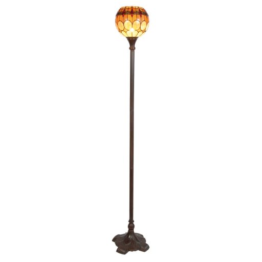 Bronz színű polyresin vázas Tiffany álló lámpa Tiffany üveg búrával.