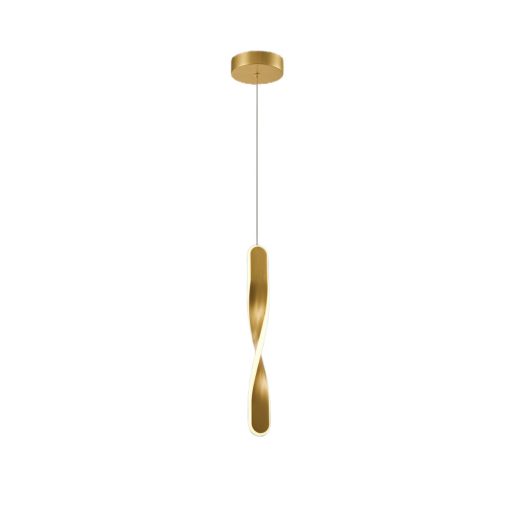 Légies megjelenésű függeszték lámpa súrolt arany színű fém mennyezet rózsával és arany színű fém csavart búrával, opálos szilikon peremmel, meleg fehér színhőmérsékletű beépített LED fényforrással. A lámpa belógása felszereléskor 50-120cm között állítható.