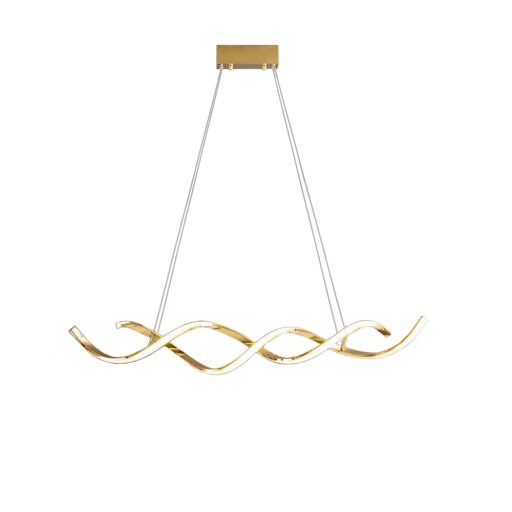 Csavart búrás, elegáns függeszték lámpa. A lámpa teste arany színű fém és alumínium anyagból készült, hullámos, opálos szilikon betétes búrával, melyet meleg fehér színhőmérsékletű beépített LED fényforrás világít meg. A lámpa minimális belógása 55cm, maximális belógása pedig 120cm, ami a felszereléskor állítható.