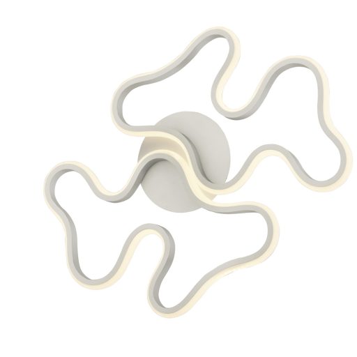 Fehér színű fém vázas falra és mennyezetre egyaránt szerelhető lámpa amőba alakú szilikon betétes búrával, meleg fehé színhőmérsékletű beépített LED fényforrással.