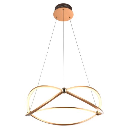 Rózsaarany színű súrolt alumínium függeszték lámpa 57cm átmérőjű opálos szilikon betétes búrával, meleg fehér színhőmérsékletű beépített LED fényforrással.