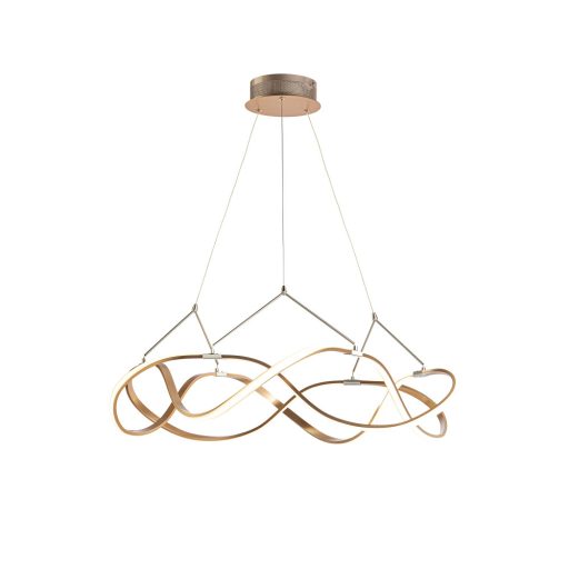 Rózsaarany színű súrolt alumínium függeszték lámpa króm felfogató elemekkel, 80cm átmérőjű opálos szilikon betétes búrával, meleg fehér színhőmérsékletű beépített LED fényforrással. A lámpa belógása felszereléskor 60-150cm között állítható. A lámpa fényereje szabályozható arra alkalmas fali kapcsoló segítségével.