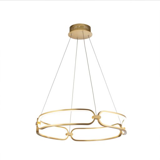 Rózsaarany színű súrolt alumínium függeszték lámpa 60cm átmérőjű opálos szilikon betétes búrával, meleg fehér színhőmérsékletű beépített LED fényforrással. A lámpa belógása felszereléskor 50-115cm között állítható. A lámpa fényereje szabályozható arra alkalmas fali kapcsoló segítségével.
