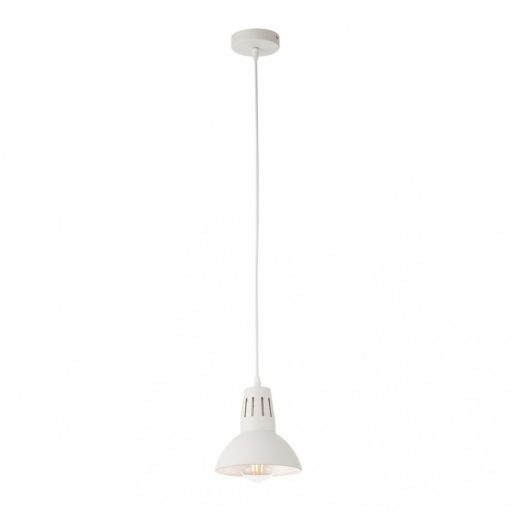 Matt fehér színre festett fém függeszték fém ernyővel.