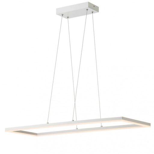 Matt fehér színre festett fém vázas függeszték szatinált akril betéttel, beépített LED fényforrással és fali kapcsoló segítségével 3 lépcsőben szabályozható fényerővel.
