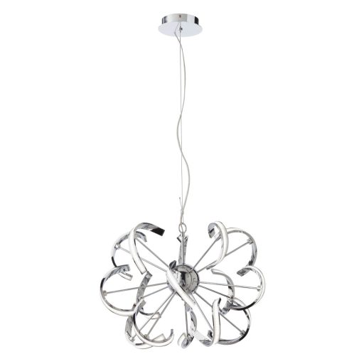 Fényes króm színű fém vázas függeszték szatinált műanyag betéttel, beépített LED fényforrással.