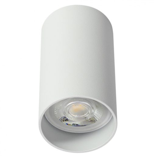 Matt fehér színre festett alumínium, henger alakú mennyezeti lámpa fix GU10-es foglalattal.