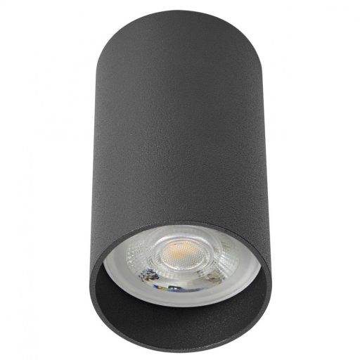 Matt fekete színre festett alumínium, henger alakú mennyezeti lámpa fix GU10-es foglalattal.