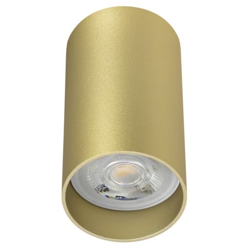 Matt arany színre festett alumínium, henger alakú mennyezeti lámpa fix GU10-es foglalattal.