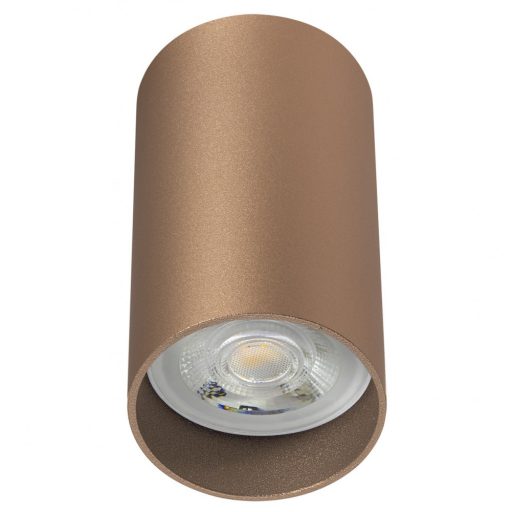 Matt réz színre festett alumínium, henger alakú mennyezeti lámpa fix GU10-es foglalattal.