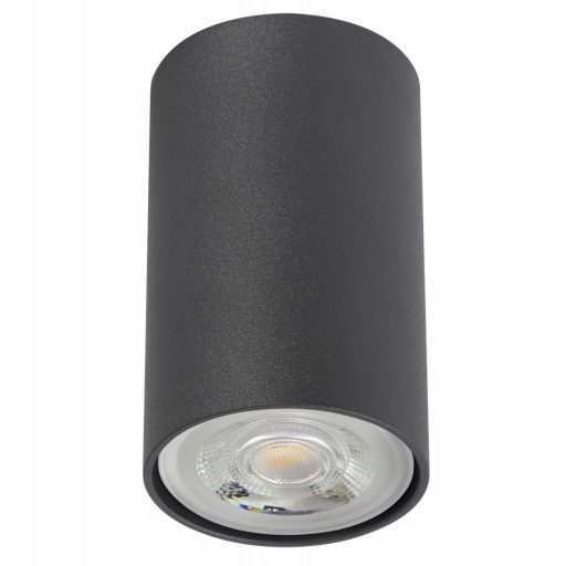 Matt fekete színre festett alumínium, henger alakú mennyezeti lámpa fix GU10-es foglalattal.