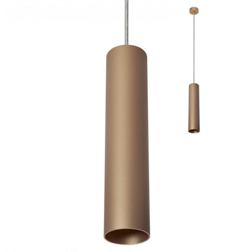 Matt réz színre festett alumínium, henger alakú függeszték fix GU10-es foglalattal.