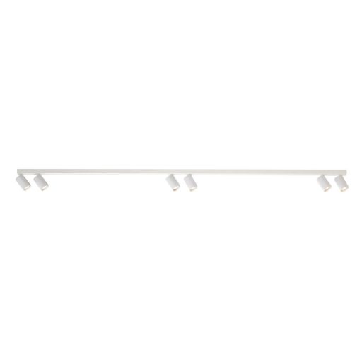 Matt fehér színű fém vázas spot lámpa 6db fehér színű alumínium búrával, GU10-es foglalattal.