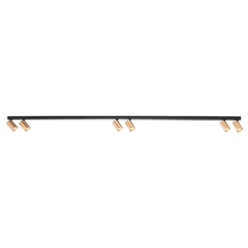 Matt fekete színű fém vázas spot lámpa 6db arany színű alumínium búrával, GU10-es foglalattal.