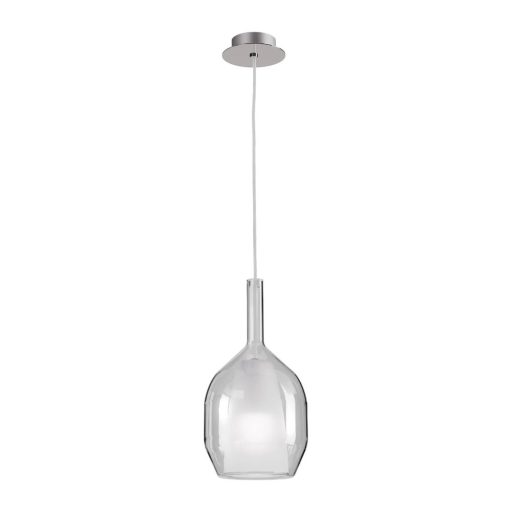 Króm színű fém vázas függesztett lámpa kívül átlátszó, belül opálos üveg búrával, 1db E27-es foglalattal. A lámpához külön kaphatóak más függesztő eleket, mely segítségével a lámpacsalád bármely tagjait egyedileg kombinálva készíthető akár több ágú függeszték is.
