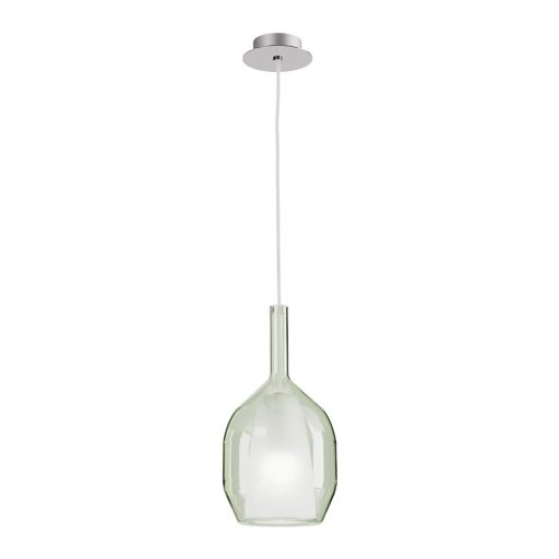 Króm színű fém vázas függesztett lámpa kívül áttetsző zöld, belül opálos üveg búrával, 1db E27-es foglalattal. A lámpához külön kaphatóak más függesztő eleket, mely segítségével a lámpacsalád bármely tagjait egyedileg kombinálva készíthető akár több ágú függeszték is.