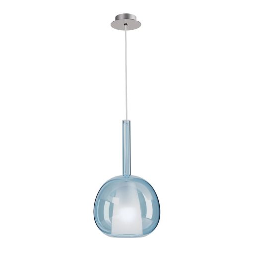 Króm színű fém vázas függesztett lámpa kívül áttetsző kék, belül opálos üveg búrával, 1db E27-es foglalattal. A lámpához külön kaphatóak más függesztő eleket, mely segítségével a lámpacsalád bármely tagjait egyedileg kombinálva készíthető akár több ágú függeszték is.