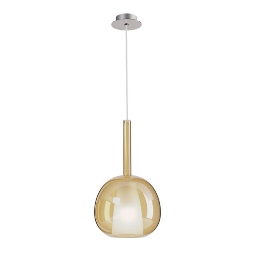 Króm színű fém vázas függesztett lámpa kívül áttetsző borostyán, belül opálos üveg búrával, 1db E27-es foglalattal. A lámpához külön kaphatóak más függesztő eleket, mely segítségével a lámpacsalád bármely tagjait egyedileg kombinálva készíthető akár több ágú függeszték is.