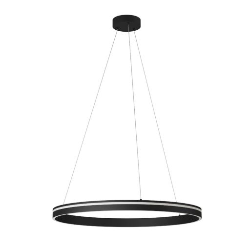 Matt fekete színű fém és alumínium függesztett lámpa szilikon betétes, 79,3cm átmérőjű búrával, beépített LED fényforrással. A lámpa színhőmérséklete állítható meleg, vagy természetes fehér (3000/4000K) színre.