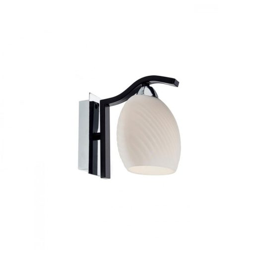 Modern stílusú falikar, króm és wenge színű fém vázzal, fehérre fújt, domború mintás üveg lámpaernyővel.
