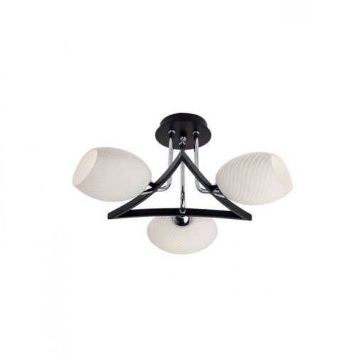 Modern stílusú mennyezeti lámpa, króm és wenge színű fém vázzal, fehérre fújt, domború mintás üveg lámpaernyővel.