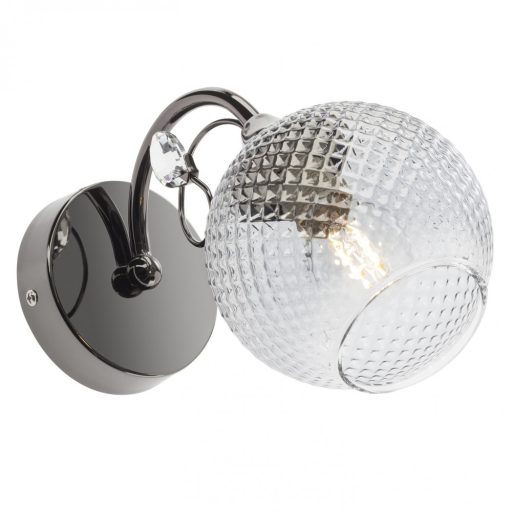 Fényes fekete króm színű fém vázas falikar füstszínű üveg búrával és üvegkristály dekorral.