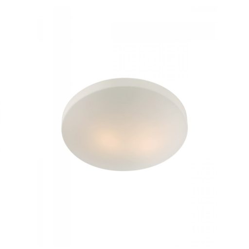 Modern stílusú, kerek fali/mennyezeti lámpa, fehér színű fém vázzal és opál üveg búrával.