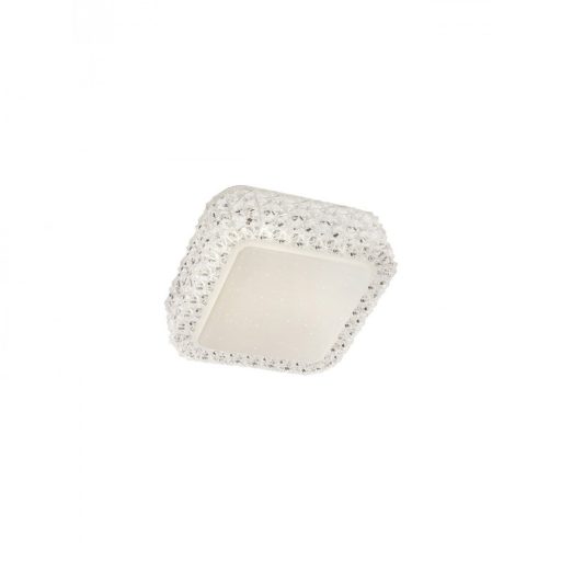 Modern stílusú, beépített LED-es fali/mennyezeti lámpa fehér színű fém vázzal és áttetsző szegélyes, fehér színű akril búrával. A búra csillogó hatású, illetve a LED világításnak köszönhetően egyenletes fényt ad.