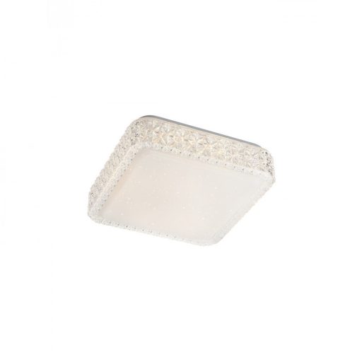 Modern stílusú, beépített LED-es fali/mennyezeti lámpa fehér színű fém vázzal és áttetsző szegélyes, fehér színű akril búrával. A búra csillogó hatású, illetve a LED világításnak köszönhetően egyenletes fényt ad.