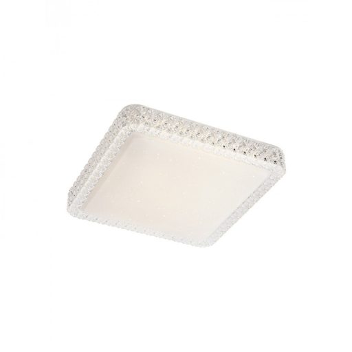Modern stílusú, beépített LED-es fali/mennyezeti lámpa fehér színű fém vázzal és áttetsző szegélyes, fehér színű akril búrával. A búra csillogó hatású, illetve a LED világításnak köszönhetően egyenletes fényt ad.