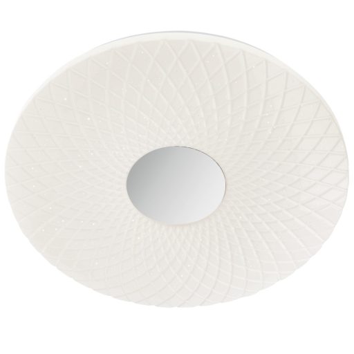 Fehér színű fém vázas lámpa csillagos égbolt effektes, króm dekoros műanyag búrával, beépített LED fényforrással. A lámpa falra és mennyezetre egyaránt szerelhető.