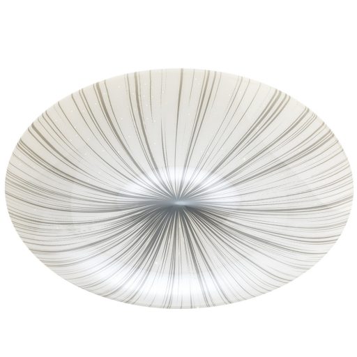 Fehér színű fém vázas, csillagos égbolt effektes, fehér alapon szürke mintás műanyag búrás lámpa beépített LED fényforrással. A lámpa tetszőlegesen falra vagy mennyezetre szerelhető.