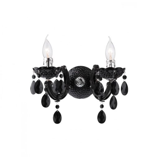 Klasszikus stílusú fali lámpa, króm színű fém szerkezettel, fekete színű akril bevonattal és fekete akril kristály díszítőelemekkel.