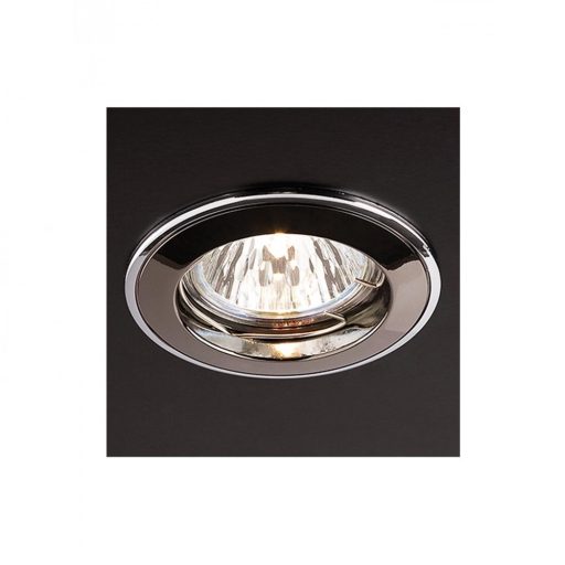 Beépíthető, kerek mennyezeti spot lámpa, metál szürke és króm színű zamak (cink-alumínium ötvözet) vázzal.