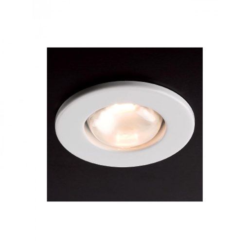 Fehér színű, beépíthető, kerek mennyezeti spot lámpa, fém vázzal.