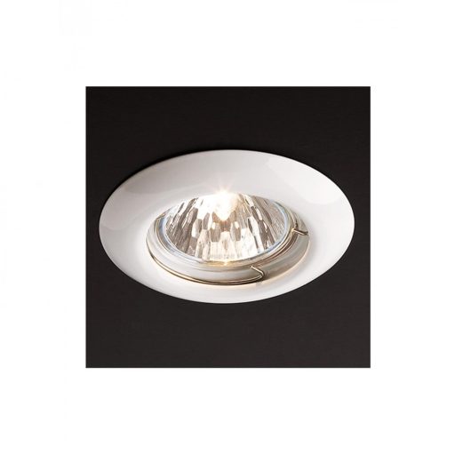 Fehér színű, beépíthető, kerek mennyezeti spot lámpa, fém vázzal.