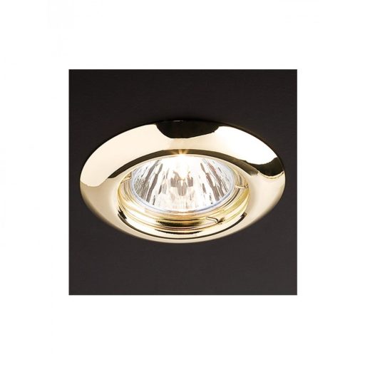 Fényes sárgaréz színű, beépíthető, kerek mennyezeti spot lámpa, fém vázzal.
