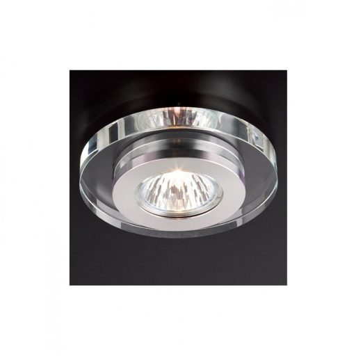 Beépíthető, kerek mennyezeti lámpa alumínium vázzal és kristály búrával.