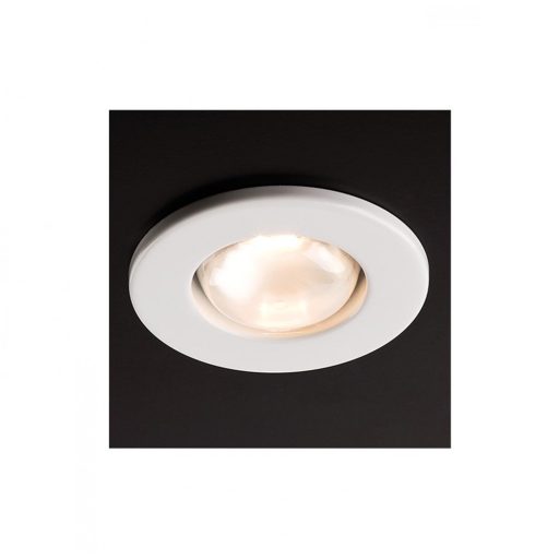 Fehér színű, beépíthető, kerek mennyezeti spot lámpa, fém vázzal.